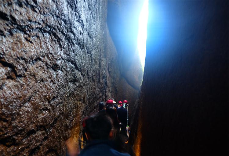 接下来是我们此次太姥山之行的重头戏---一线天。洞内狭窄,低矮,更多的时候不得不蹲着走,侧着走,猫着腰走,体型稍肥一些的更是脱了外套,吸着肚子,摒着气息才能勉强通过。